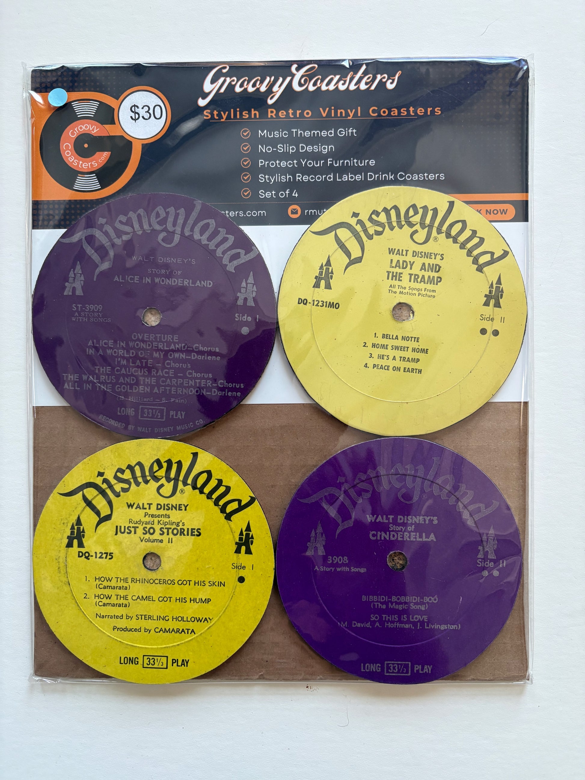 walt disney-disneyland record lp label drink coaster set